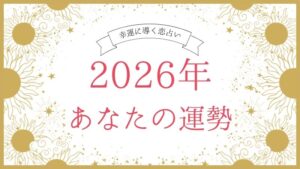 こんにちは、花房志帆です。 2026年という新しいページが始まりました。 今年の星の動きは非常にダイナミック! そんな時期だからこそ、大切にしてほしいのが「自分の内側から発する言葉」です。 占いで「運勢が良い」と言われて […]