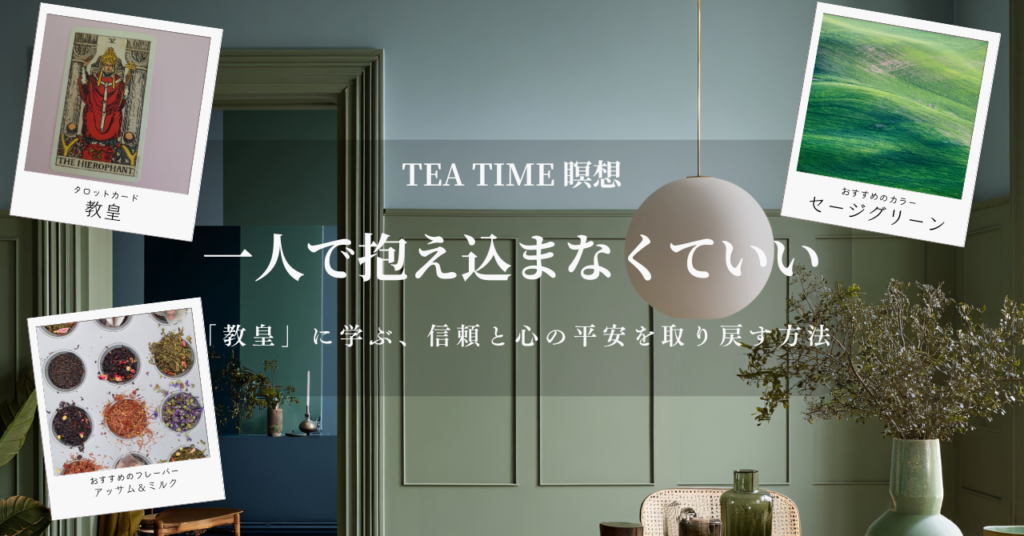 「教皇」は、知識を智慧に変え、導きを与えるカードです。お茶の時間を使って、あなたの内なる「師(ハイアーセルフ)」と繋がる時間を作りましょう。