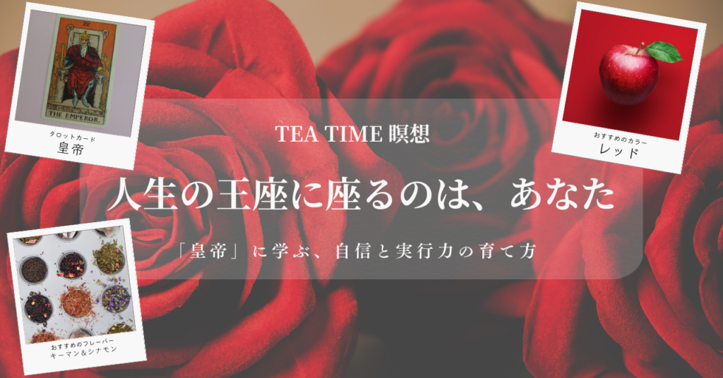 「皇帝」は、秩序と構造を作るカードです。お茶の時間を使って、散らばった思考を整理し、自分軸を真っ直ぐに立て直しましょう。