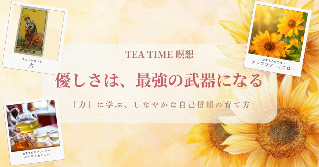 「力」は、自分の本能(ライオン)を優しく受け入れるカードです。お茶の時間を使って、自分の中の「激しい感情」や「不安」を優しくなだめてあげましょう。